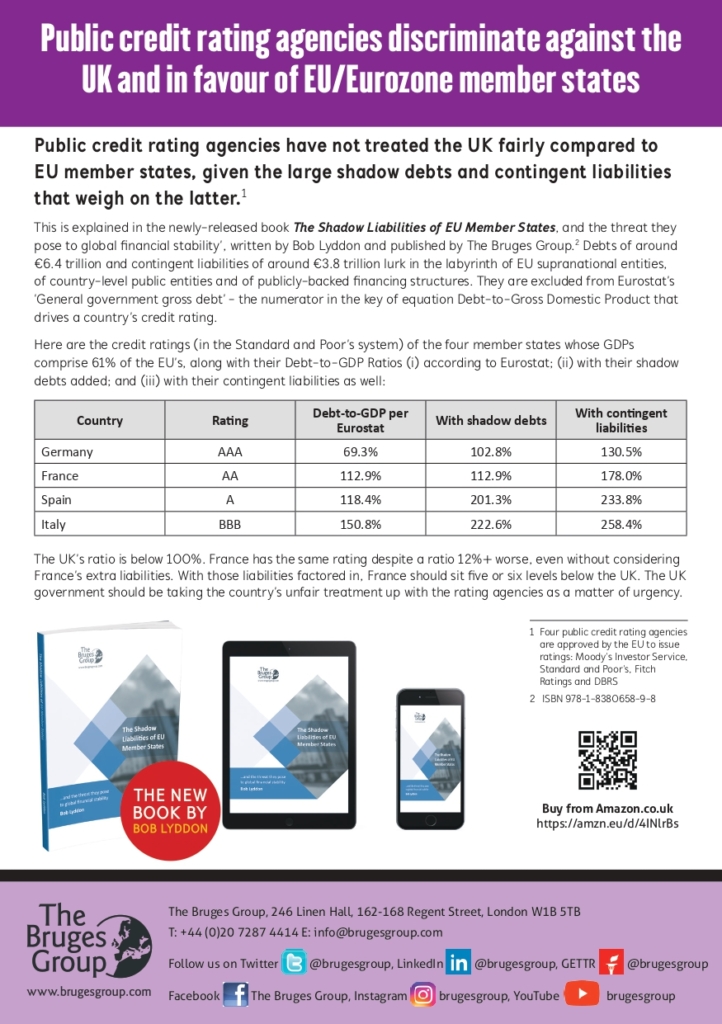 Public credit rating agencies have not been even-handed in their treatment of the UK compared to EU member states, given the large shadow debts and contingent liabilities that weigh on the latter.[1]