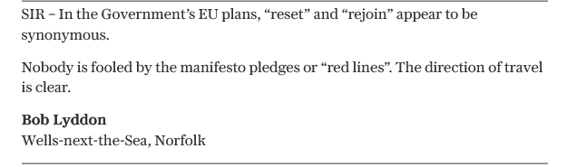 This is my letter published in the Daily Telegraph on 14 April 2026, about the Labour Party’s plans for the so-called ‘Reset’ of the UK’s relations with the EU.
